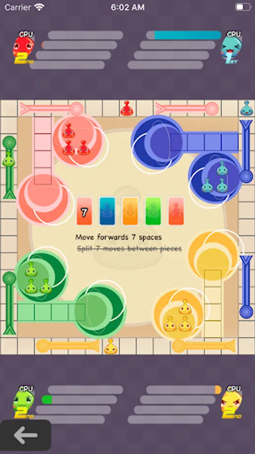 Gameplay is rapid-paced, as cards that contain invalid moves will slide off-screen automatically. No time is wasted in-between turns. Progress bars and ranks in the four corners of the screen will keep you up to date on where you stand in comparison to the other players.
