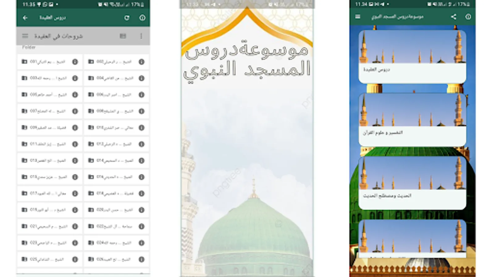 This application contains material from the asatidz at the Nabawi Mosque, for example: