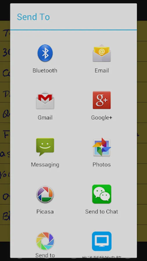 4. The writing note can export as image and send by Email, SMS, Chat or the social sharing applications installed on your phone.