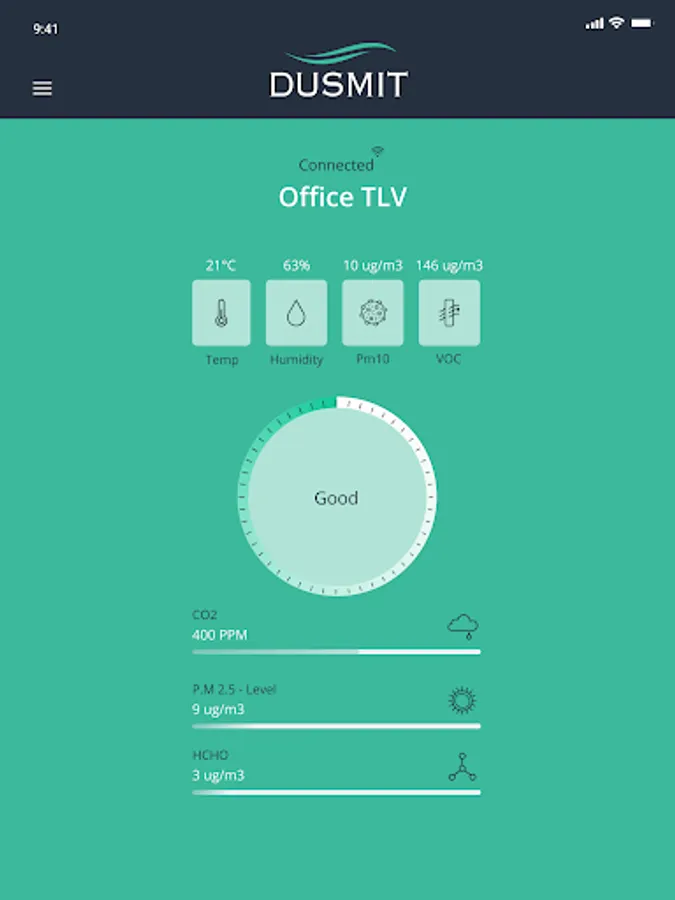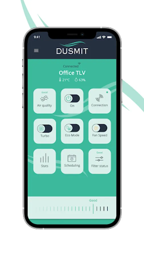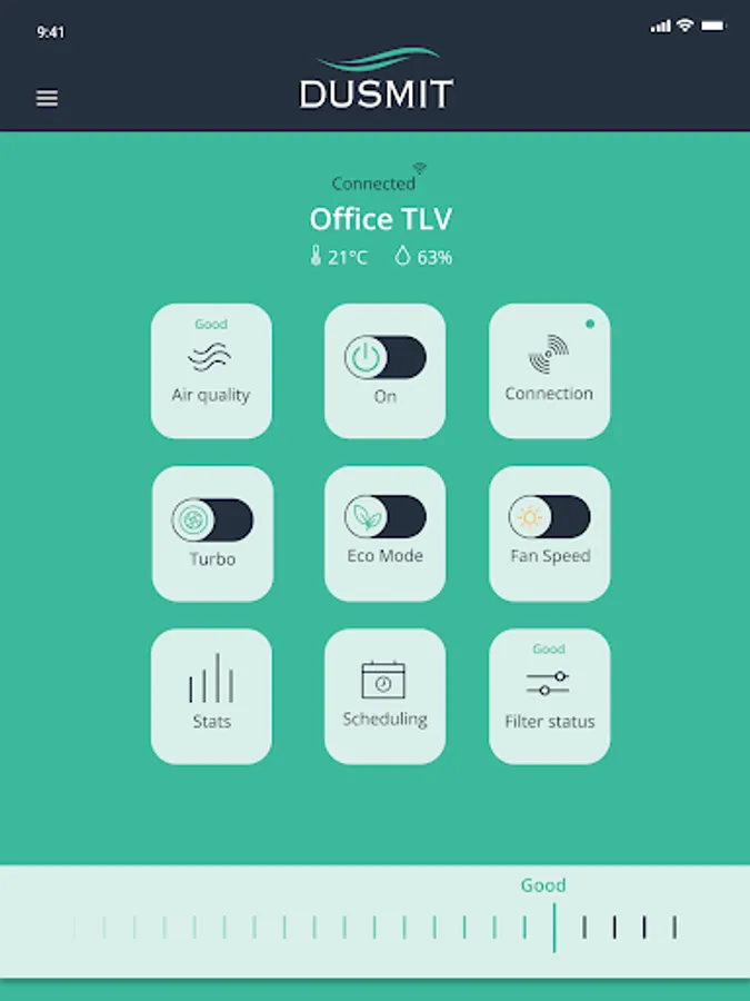 When linked to the Dusmit AirOclear Air Purifiers, you can: