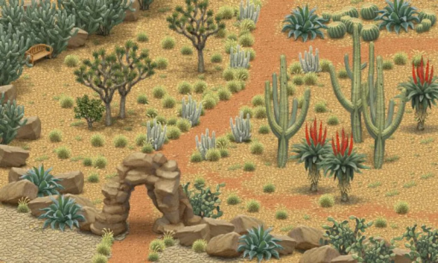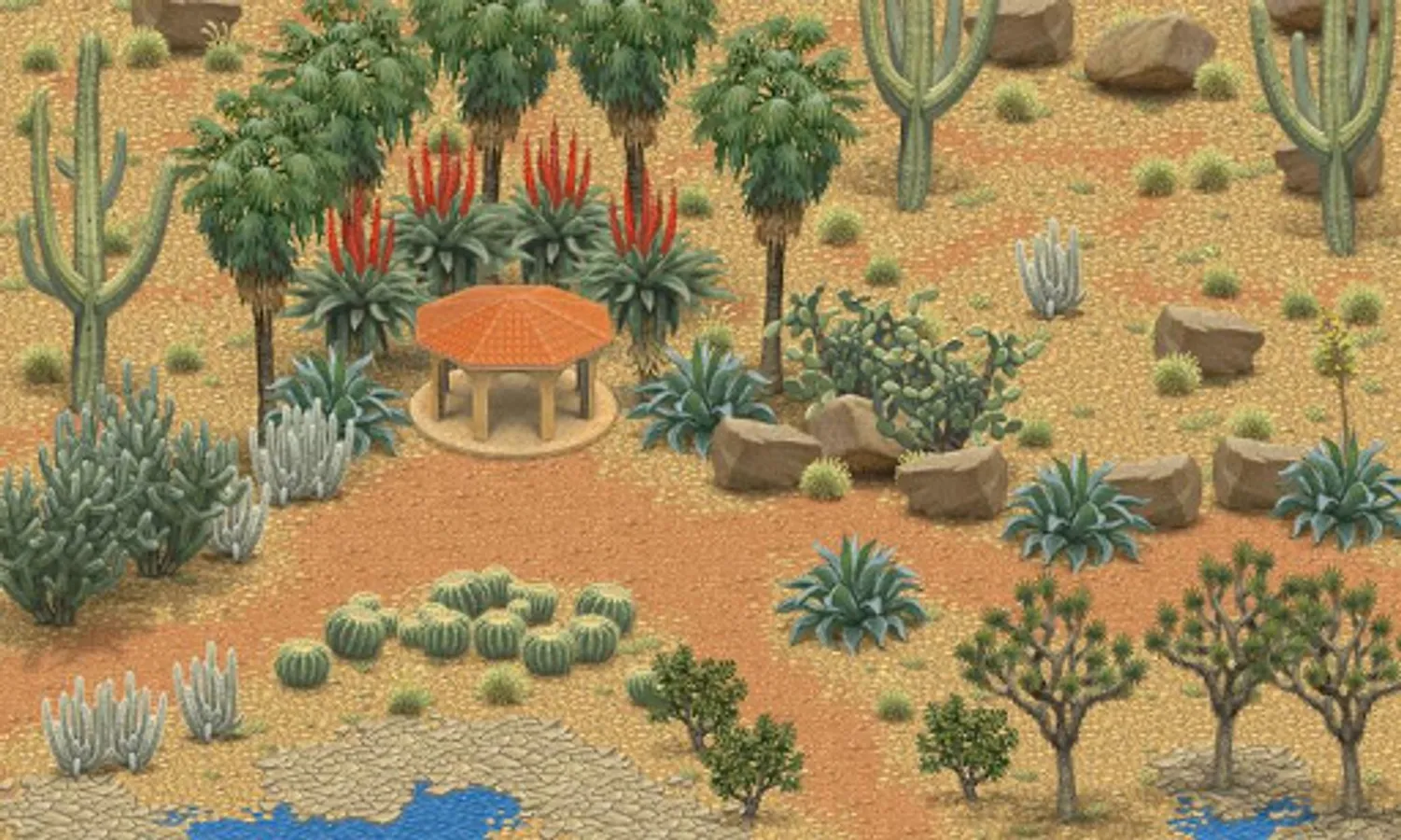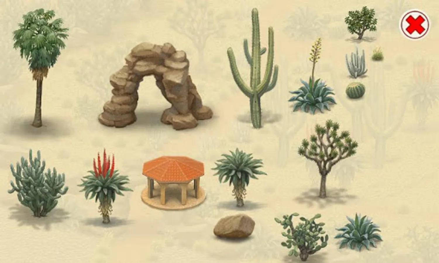 This art pack contains everything you need to create a full-fledged desert paradise: ranging from small decorative succulents like Silver Torch or Golden Barrel to towering Saguaro cactus and California fan palms, there are sculptural shapes of aloe and agave, rugged looks of Joshua tree, and more! The selection of desert vegetation is complemented with four new surfaces, a Mexican-style gazebo and an epic Sahara rock arch! Four new collectible cards of desert animals!