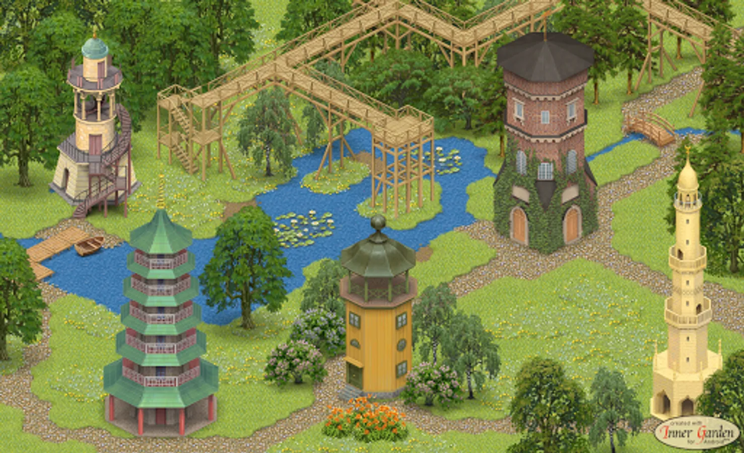 This premium pack allows Inner Garden enthusiasts and supporters to donate 20 USD to enable further development of the app. This spectacular pack contains highly realistic and detailed depictions of landmark architecture based on existing buildings: Marlborough Tower from Versailles, Kew gardens pagoda, Lednice minaret, Drottningholm lookout tower and a study of the Swedish scientist P.J. Bergius. Apart from the buildings, the pack also contains a building set for treetop walkways, another spectacular feature seen only in a few gardens around the world.