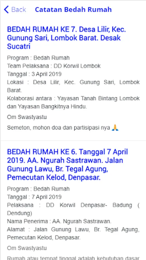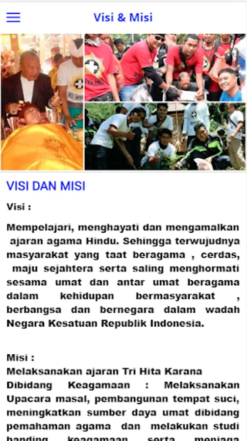 Dibidang Keagamaan : Melaksanakan Upacara masal, pembangunan tempat suci, meningkatkan sumber daya umat dibidang pemahaman agama dan melakukan studi banding keagamaan serta menjaga toleransi antar umat beragama. Mengimplementasikan ajaran Tat Twam Asi/ Wasudeva Kutumbakan, Menjaga dan melestarikan peninggalan sejarah, adat/ tradisi budaya Hindu di Indonesia. Melakukan media siar Hindu melalui berbagai media.