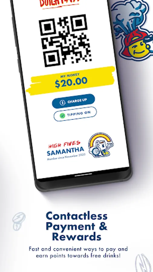 A seamless way to pay that makes it easier than ever to enjoy Dutch. Load cash and scan whenever you want to pay or earn points. You can also show love to your Broistas by adding a tip.