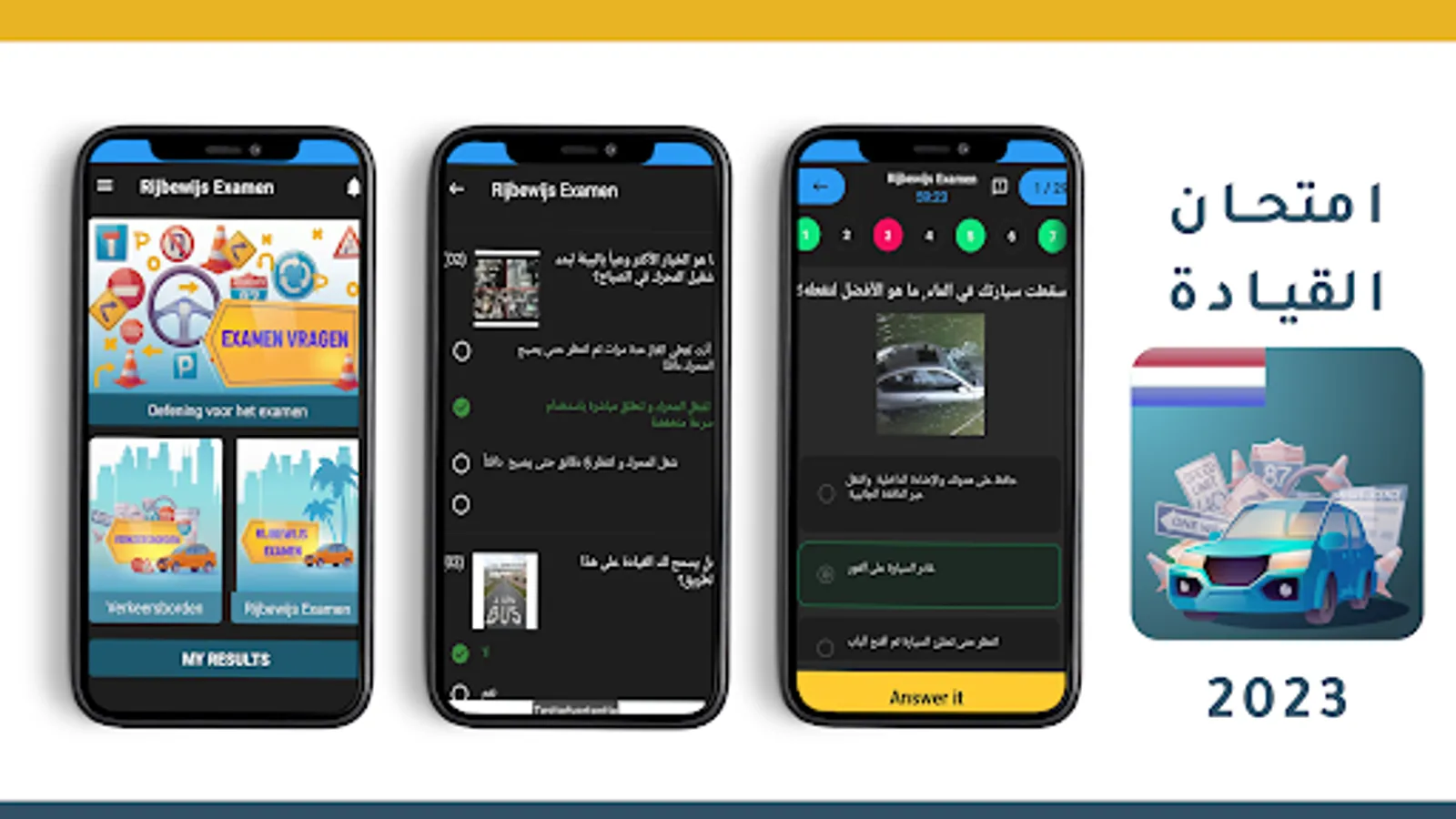 Given the importance of obtaining a driver's license in the Netherlands at this time, we have created the Dutch driver's license exam application, through which you can learn everything you want in the Turi exam in the Netherlands, including comprehensive rules and an explanation of all traffic signs, in addition to hundreds of exam models explained in both Arabic and Dutch