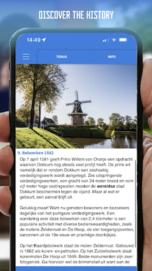 The "MeAR Fryslân" app takes you with the GPS of your mpbile phone and a clear route along points that have a story behind them. First, a short explanation is given for each point, after which you can start the interactive experience.