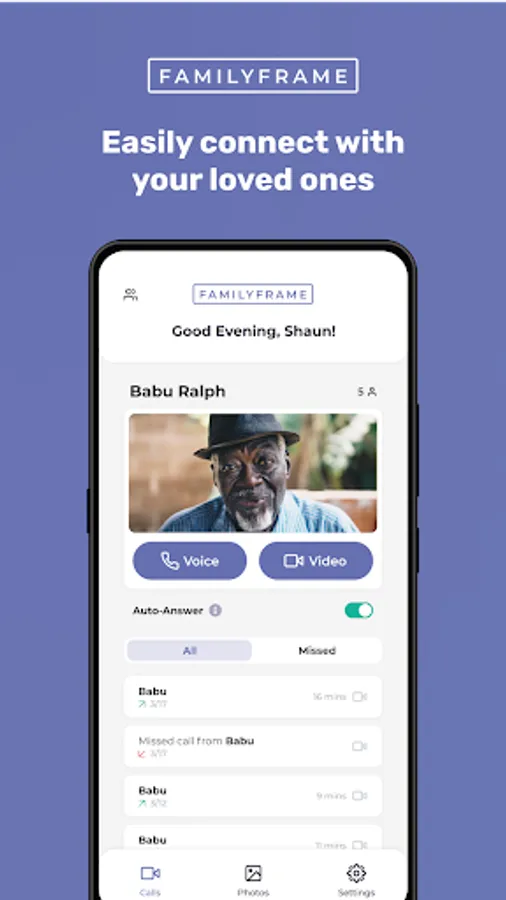 3. That’s it! The app works as a digital picture frame when not in use. When the senior wants to place a call, they can simply tap on the photo of the person they want to reach.