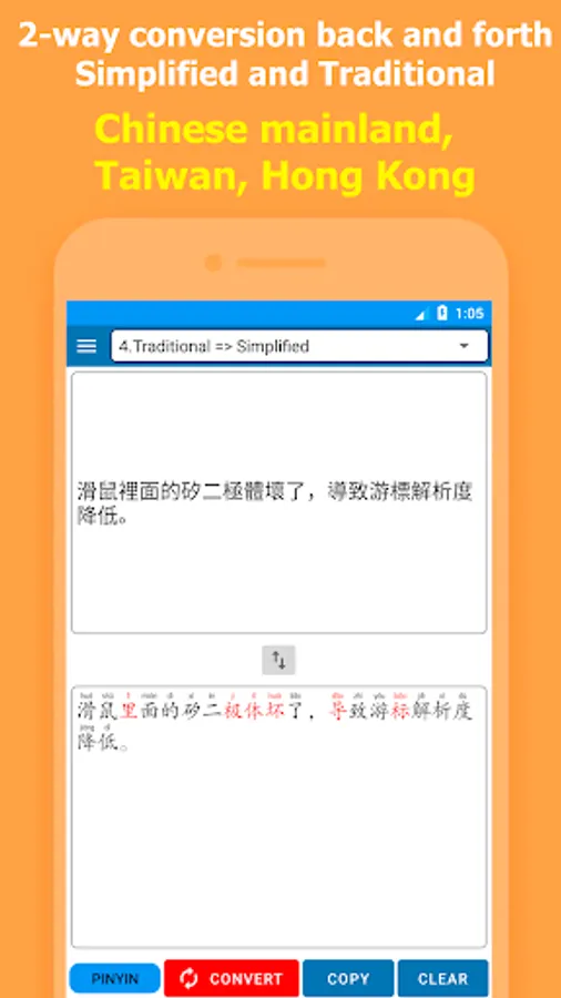 + 2-way conversion between Simplified and Traditional of Mainland China, Taiwan, Hong Kong