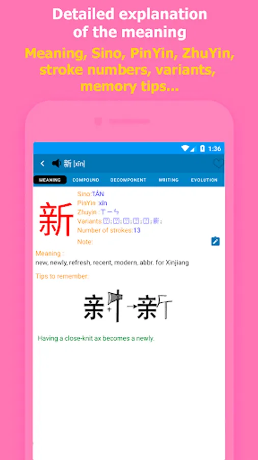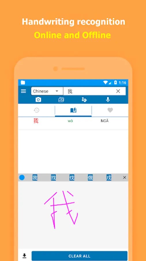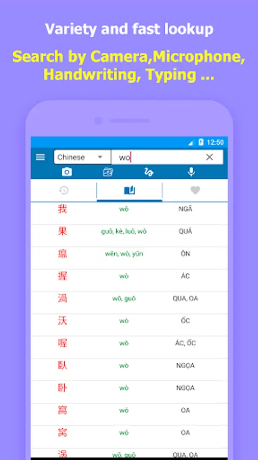 + Recognition through hard typing, pinyin, voice recognition, handwriting, images to look up Chinese or Sino characters