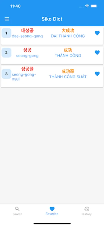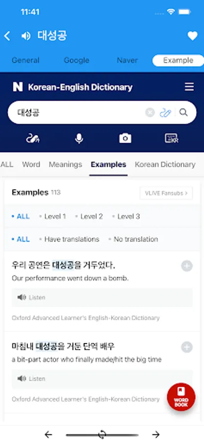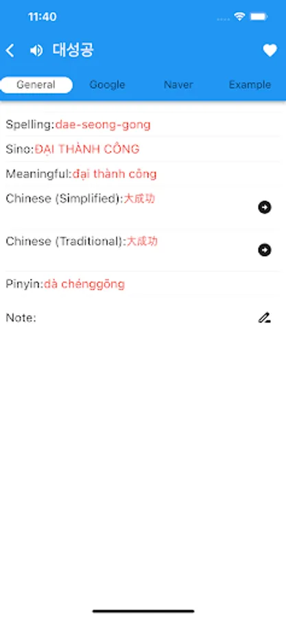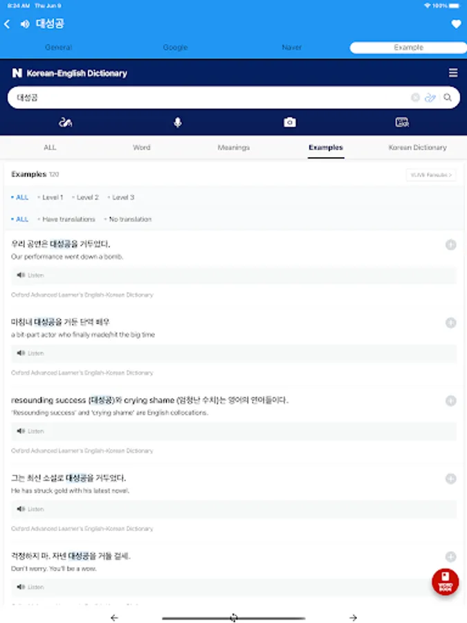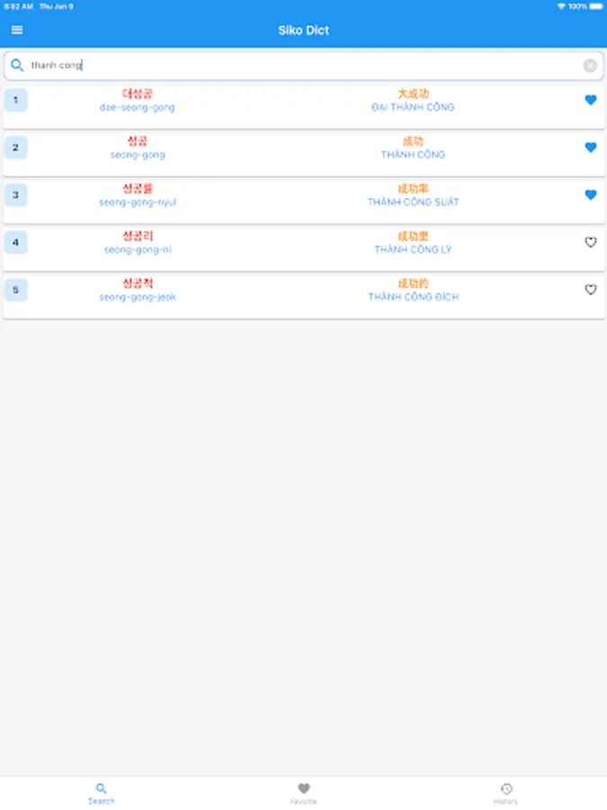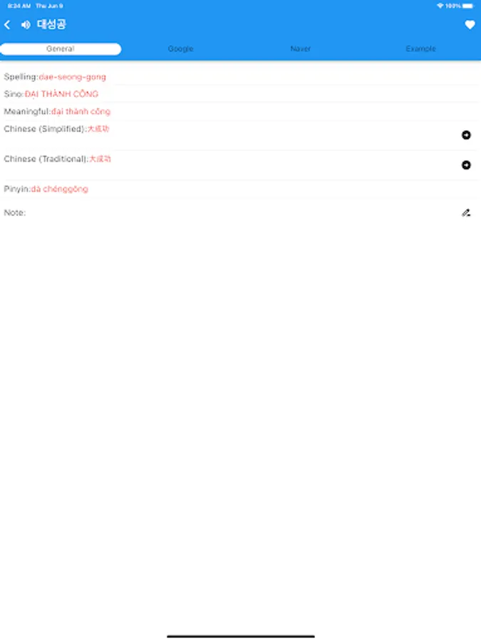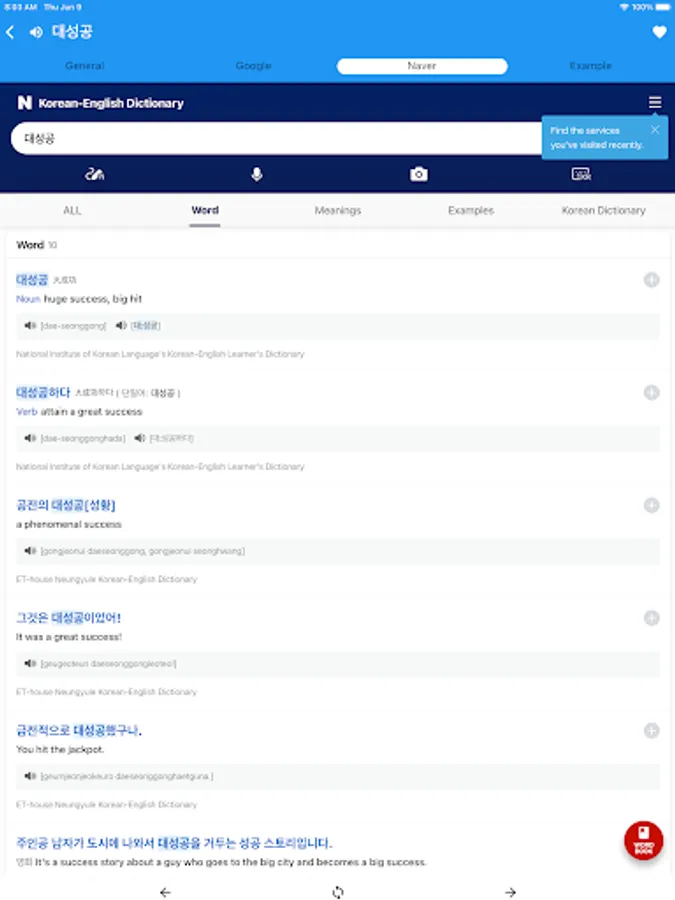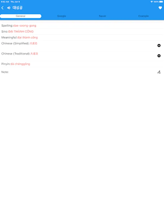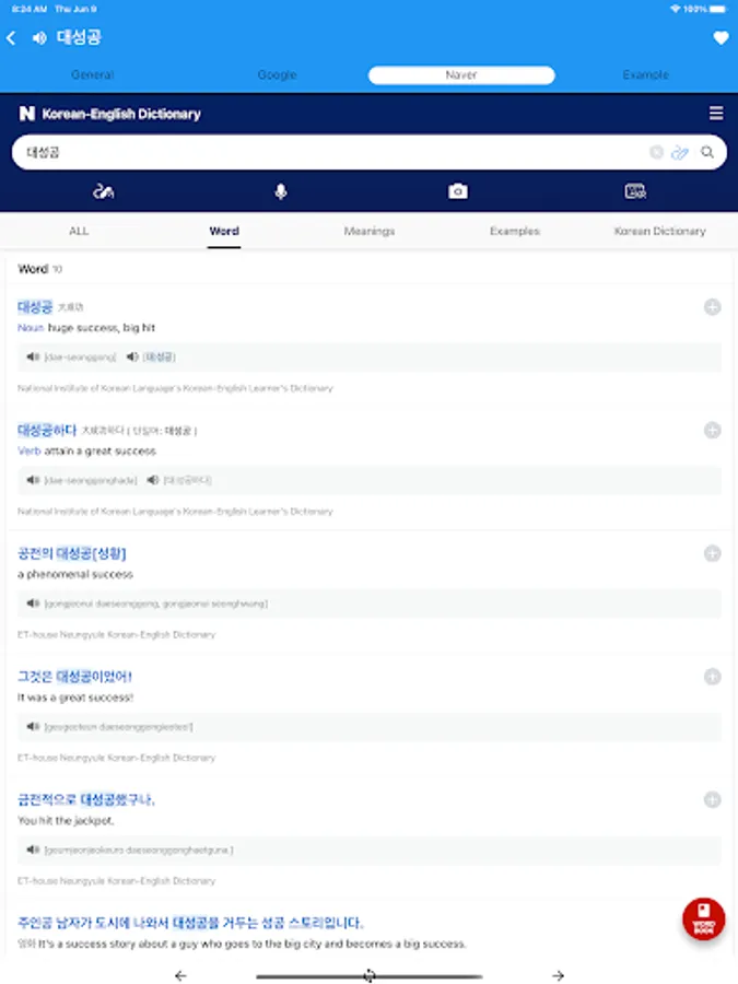 * The application supports meaning, transcription, pronunciation (including Patchim stone)