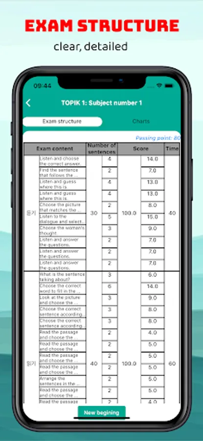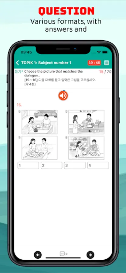 - 8 real questions TOPIK 1 and TOPIK 2 through real exams organized by the National Institute of International Education of Korea.
