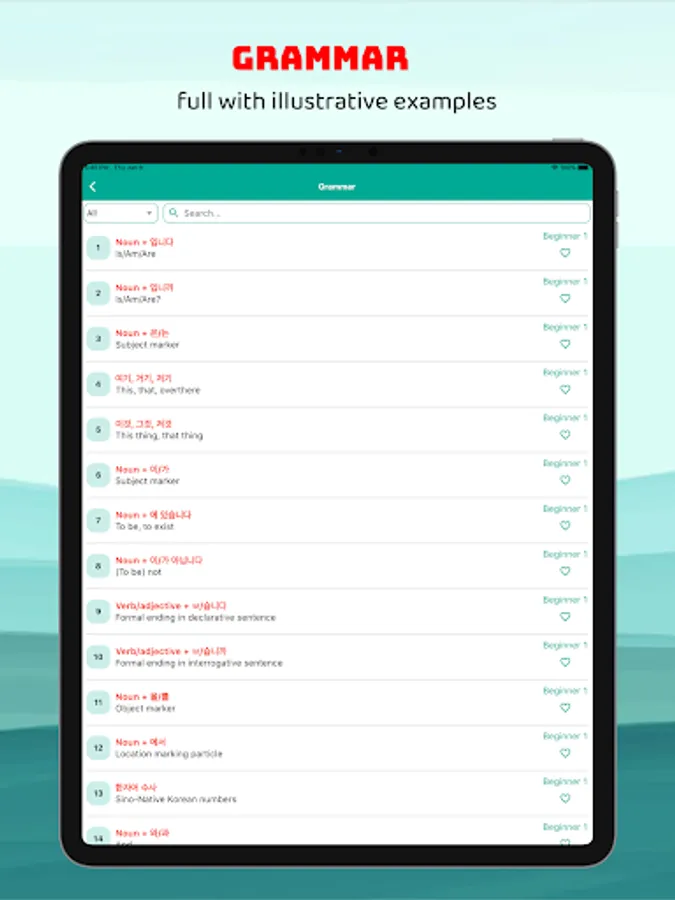 - Full, detailed Korean grammar with illustrated examples, identification in TOPIK tests.