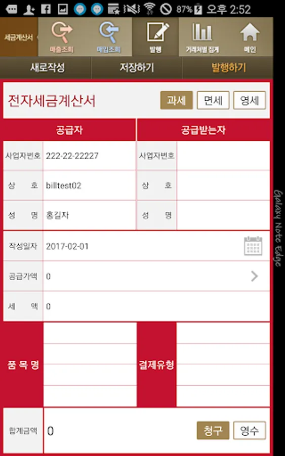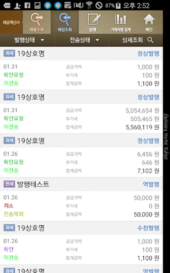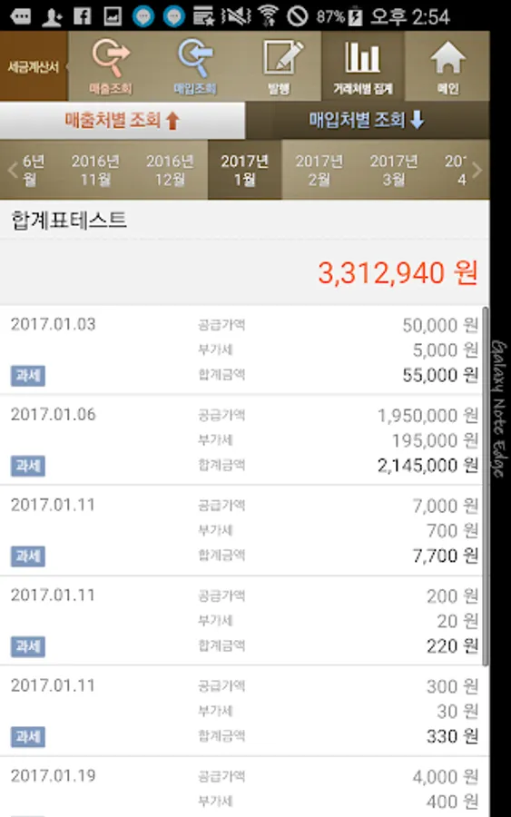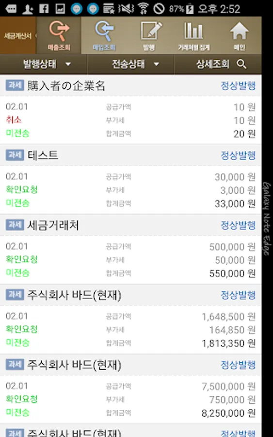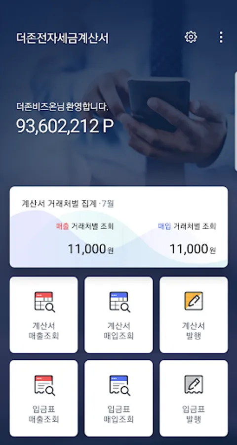 Sales queries: This is a menu to view and manage your electronic tax invoices issued by the tax bill or PC (Duzon Bill36524) issued from a smartphone or tablet PC.