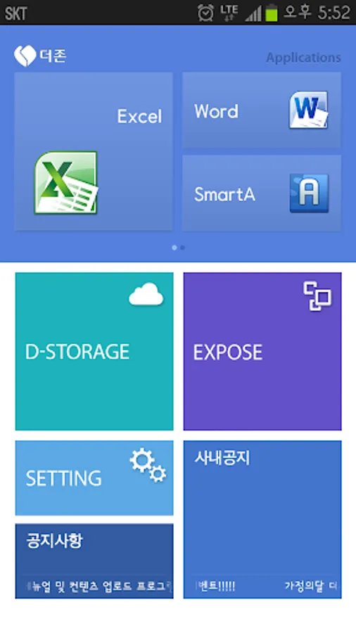 ※ Smart Square services are optimized for companies that offer and deliver cloud storage, and a variety of services for the business (community, user preferences, and management) services such as internal information in an integrated manner with corporate security business environment through application virtualization The portal service.