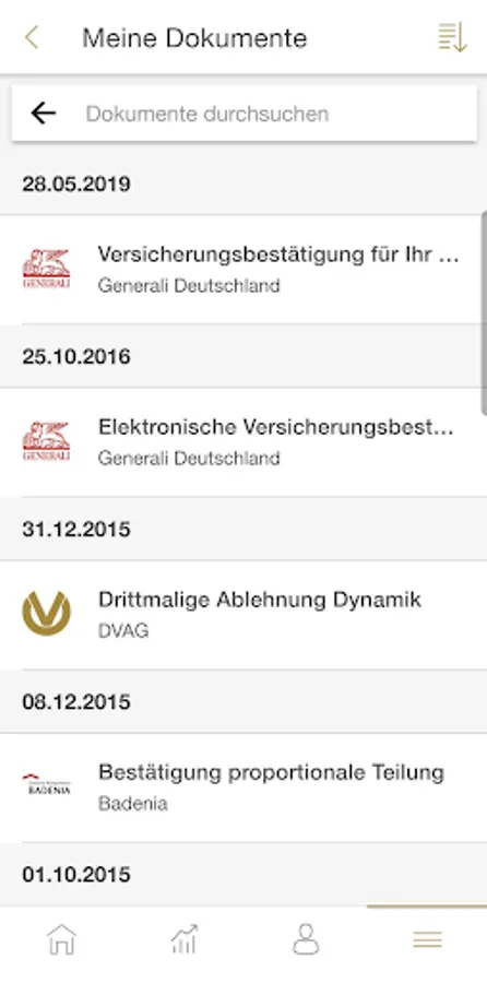 Electronic applications, advance information or post about your contracts can be encrypted and sent to MeineApp. You can send your documents such as salary slips, pension information or existing contracts to your financial advisor in a secure channel.