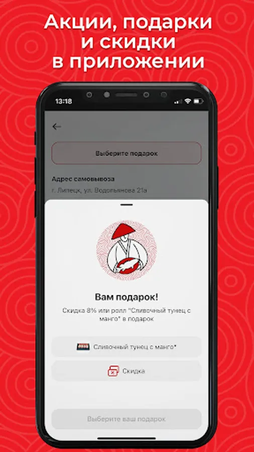 When ordering from 500 to 1000 rubles Roll "Tuna" as a gift!