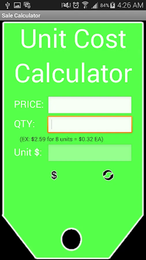 The Unit Price Calculator can be used to find out the price per unit of an item. For instance lets say you wanted to know if it was cheaper to by a 32oz mustard at $1.99 or a $64oz mustard at $3.89. Simply enter in brice and the number of ozs and hit the "$" sign this will tell you how much it costs per oz of mustard.