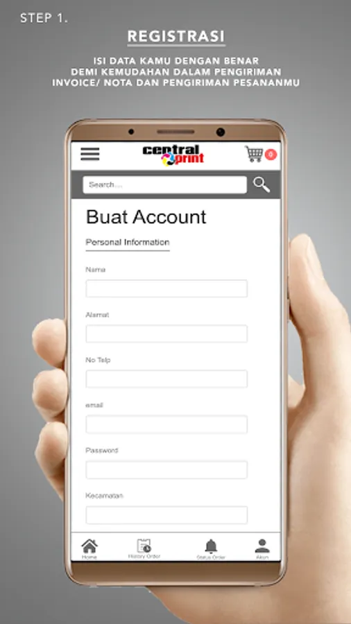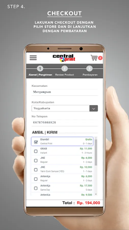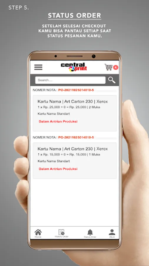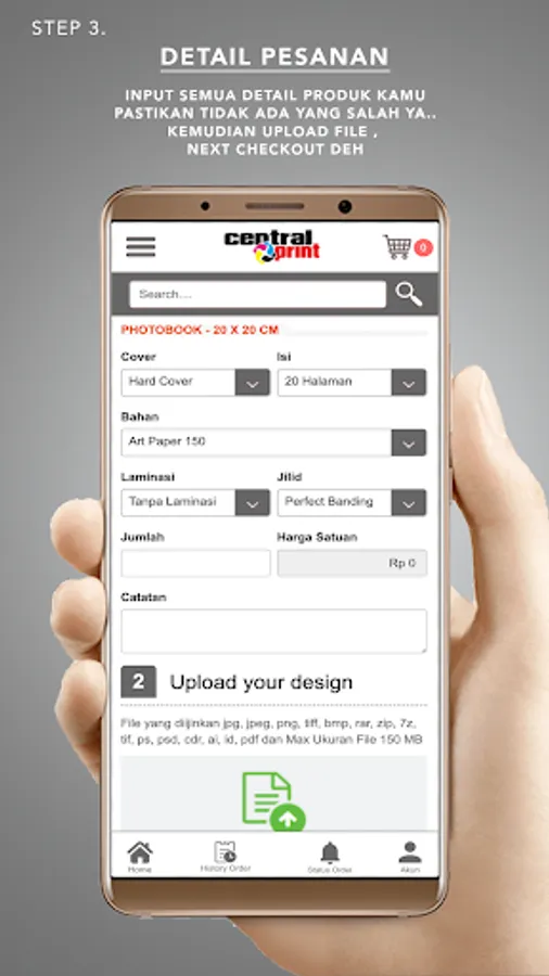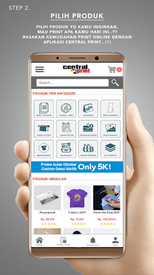 You can print/print various digital print products from Posters, Brochures, Business Cards, Catalogs, Books, Banners, Banners and others anywhere and anytime with your Gadget without having to queue up, without having to overheat, rain, get stuck in traffic jams and other sufferings .... All you can do in the CentralPrint application.