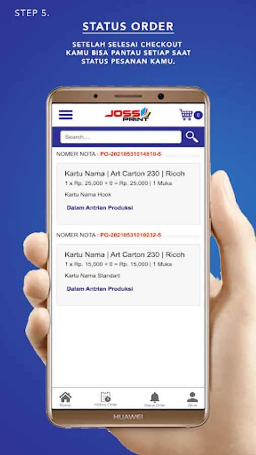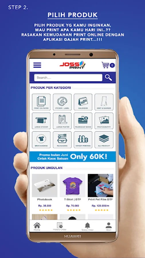 Print / print various digital print products to offset printing from Posters, Brochures, Business Cards, Catalogs, Books, Banners, Banners and others you can do anywhere and anytime with your Gadget without having to queue, without having to be hot, raining, stuck in traffic and other suffering.... You can do everything in the JOSS PRINT application.