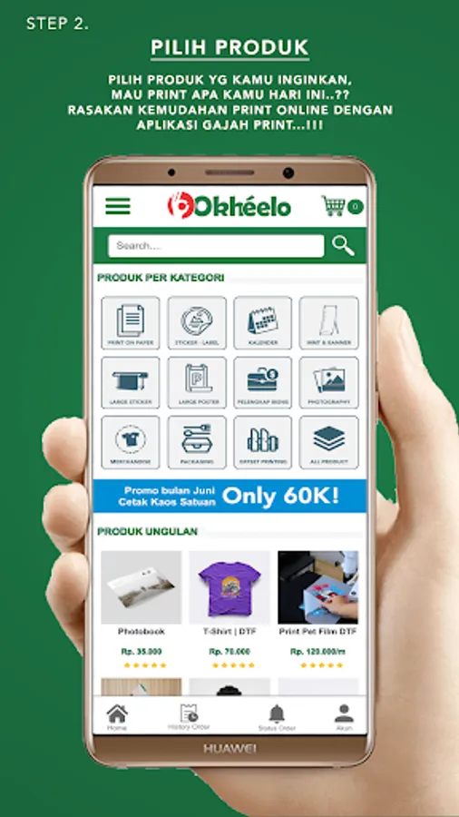 Print / print various digital print products to offset printing from Posters, Brochures, Business Cards, Catalogs, Books, Banners, Banners and others you can do anywhere and anytime with your Gadget without having to queue, without having to be hot, raining, stuck in traffic and other suffering.... You can do everything in the OKHEELO.COM application.
