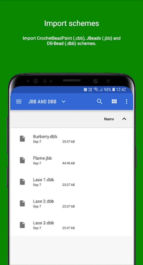 Upload harness schemes with CrochetBeadPaint (*.cbb), JBead (*.jbb) or DB-BEAD (*.dbb) files .
