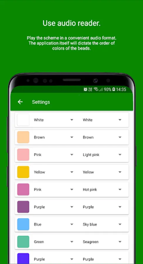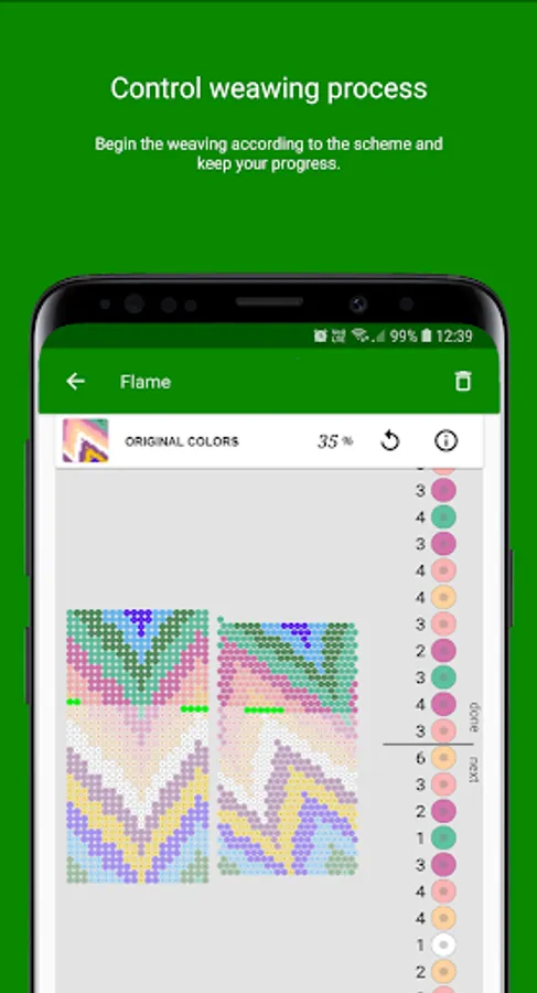 Beads App allows you to create your own patterns for beads, create color palettes and control the process of weaving.
