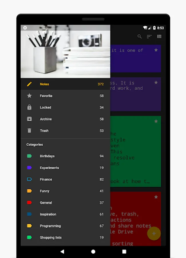 ☆ Lock with fingerprint scanner, favorite, search and share notes