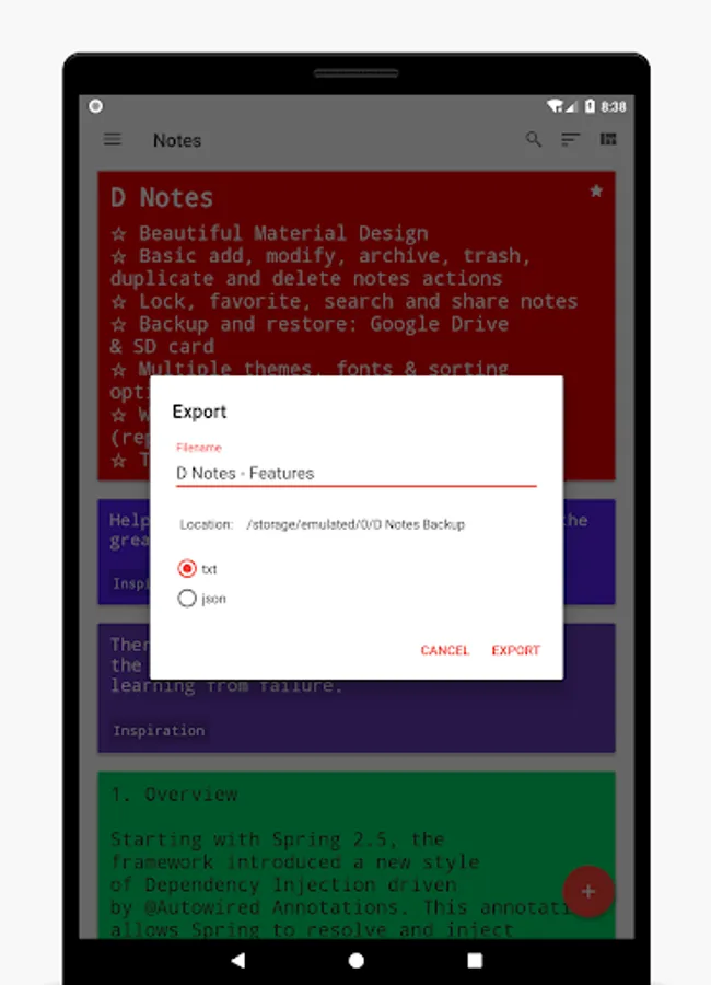 ☆ Export notes as .txt file, read notes using TTS and pin notes as notifications
