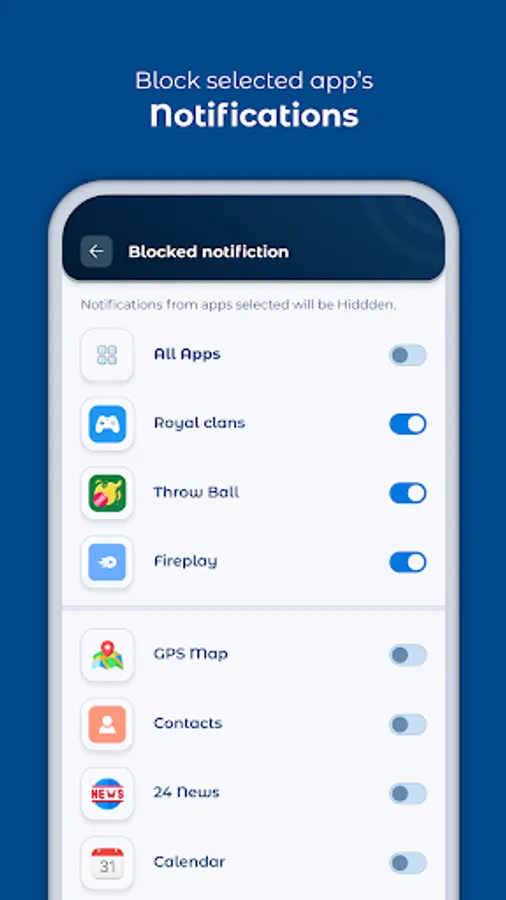 4). Blocked notifications: Want to block notifications from apps then add that apps in blocked apps list.