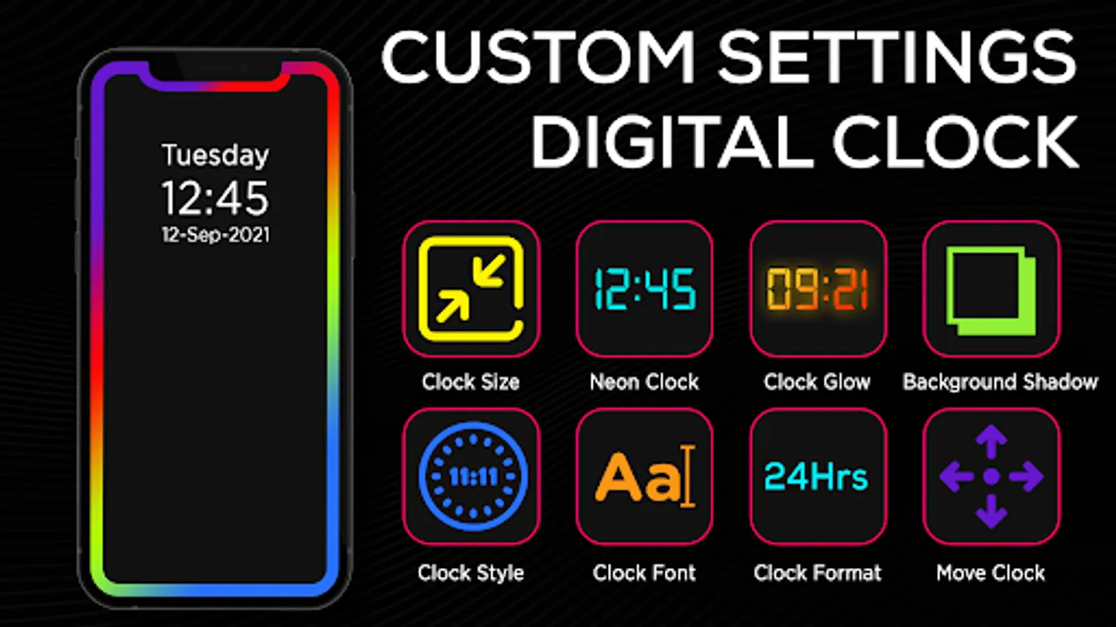 Edge Lighting Wallpaper 2021 - Digital Clocks app is with unique layout and simple working. Open our edge lighting HD app and you will simply have three options. In the first option you will have various kinds of edge light borders. You can click and set any of these borders for your screen in this border light theme 2021 app. You can also create custom gradient borders for your home and lock screen within this edge light live wallpaper app. After those easily set these edge lights and make your mobile screen look beautiful using this border light full screen app. In the second option, you can set the digital clock for your lock and home screen of phone. You can also customize the digital clock like color, size and all other things in this edge light wallpaper 4k app. In the third option, We gave a huge collection of Wallpapers. You can choose any wallpaper and set as Lock screen as well as set as Home screen