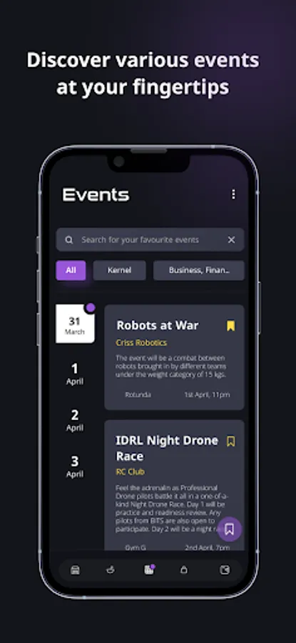 Never miss an event by using the event tracking system present on the app. The system provides a list of all events with their location and respective timing.
