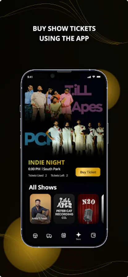 Buy tickets using the app and scan the QR code available on the wallet screen to enter the prof shows.