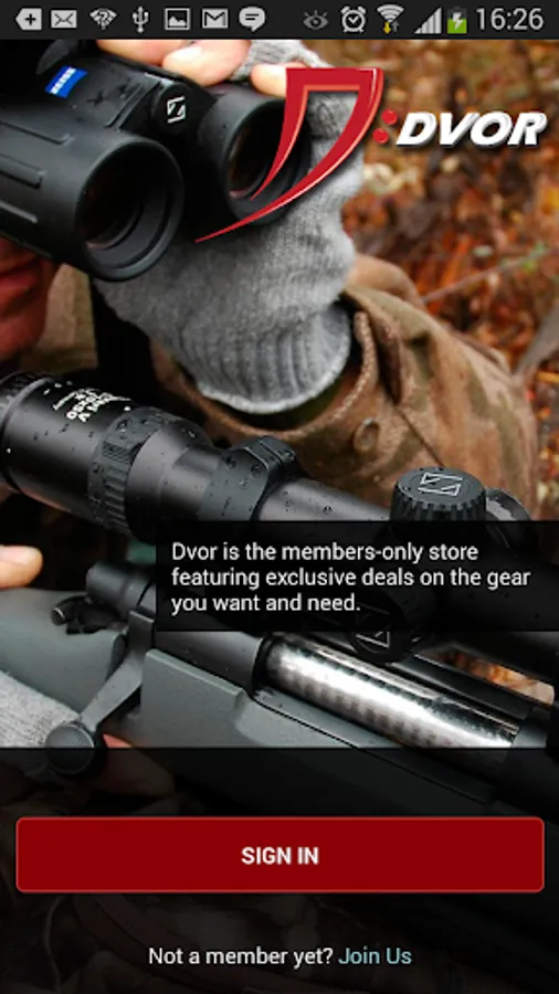 Not a member? You can sign up easily at http://dvor.com – then use your account information to log in to the app and you’ll be on your way to saving up to 70% off The Gear You Want and Need!