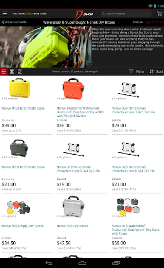 Every morning new sales event launch with hundreds of new product offerings – everything from sport optics to apparel to cool accessories and unique products. You can easily browse them within the app or search for deals on the specific products you are interested in.
