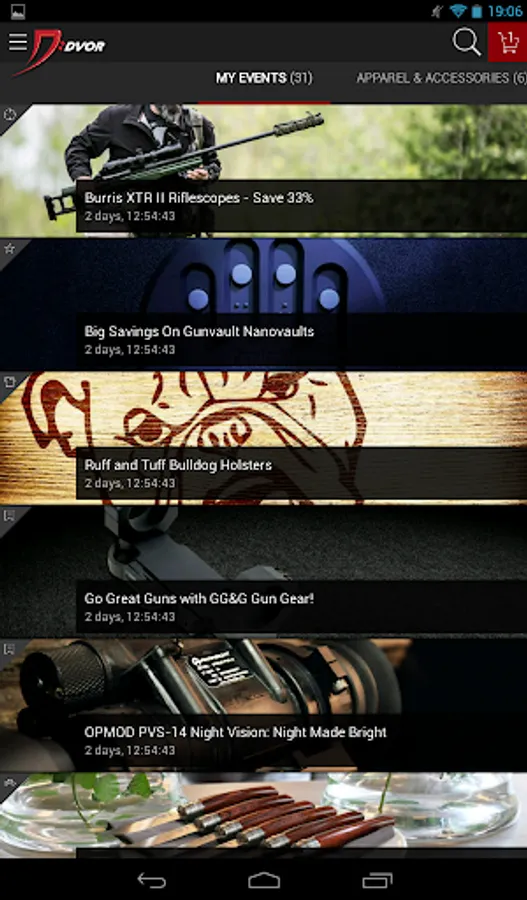 Now members can browse and shop thousands new deals every day on their Android! Dvor’s daily deals of up to 70% off cover a wide range of must-have products for firearm enthusiasts, hunters, outdoorsmen, tactical operators, law enforcement and more. From the Dvor Android app you can browse sales events, search what’s available, and place orders with an easy to use, fast, and secure application. Anything you can do on the Dvor website you can do in the app, including check your Order History or Invite Your Friends.