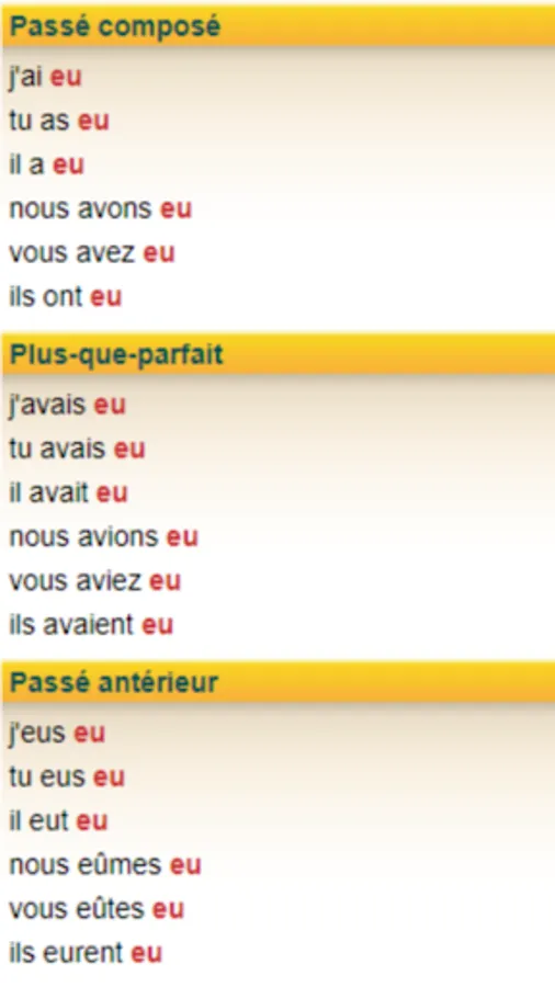 Conjugation of french verb avoir: Présent, Past compound, Futur simple