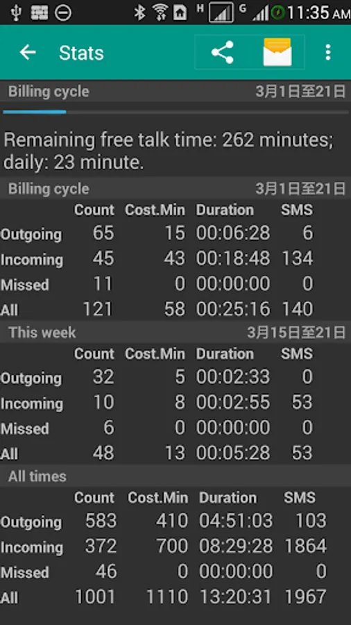 + Call statistics can calculate the length of the call and notify you before the end of the free call time