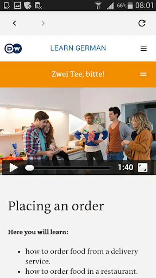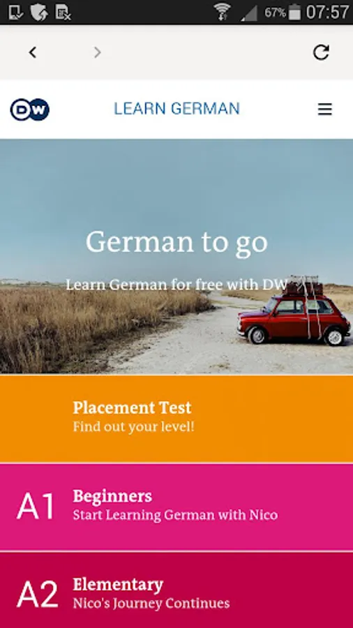 You decide what’s the best way to learn German with DW. Take your pick – maybe a video series or interactive exercises? Get started now and learn German – even if you never have before. With DW, you can go online or use your mobile to improve your German. It’s easy to get started – we have something for everyone. And if you aren’t sure where to start, just take our quick and easy Placement Test to find out which course is right for you. We cover all the levels of the Common European Framework of Reference – from beginners to experts.