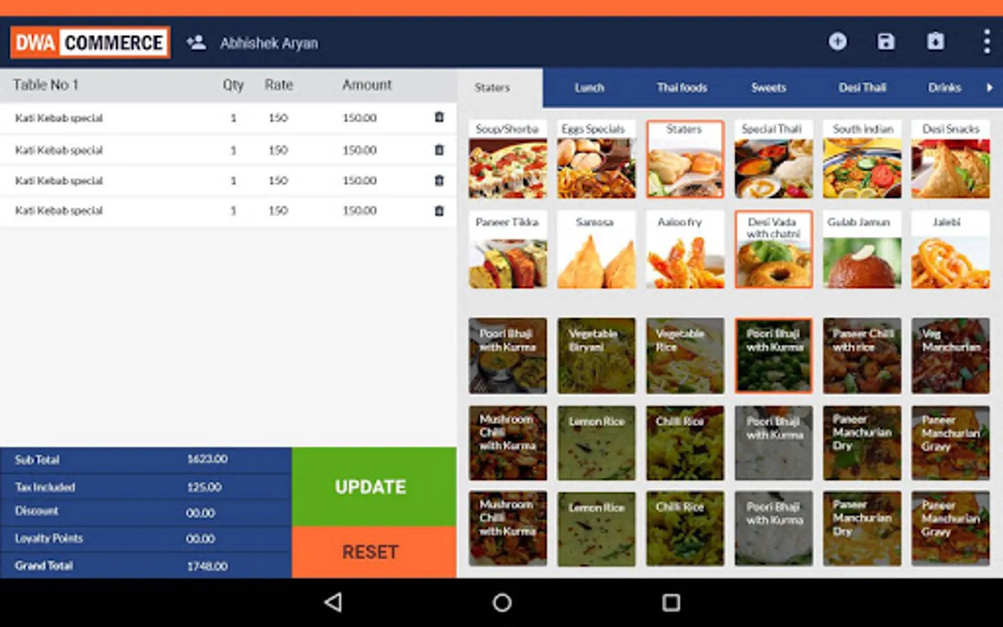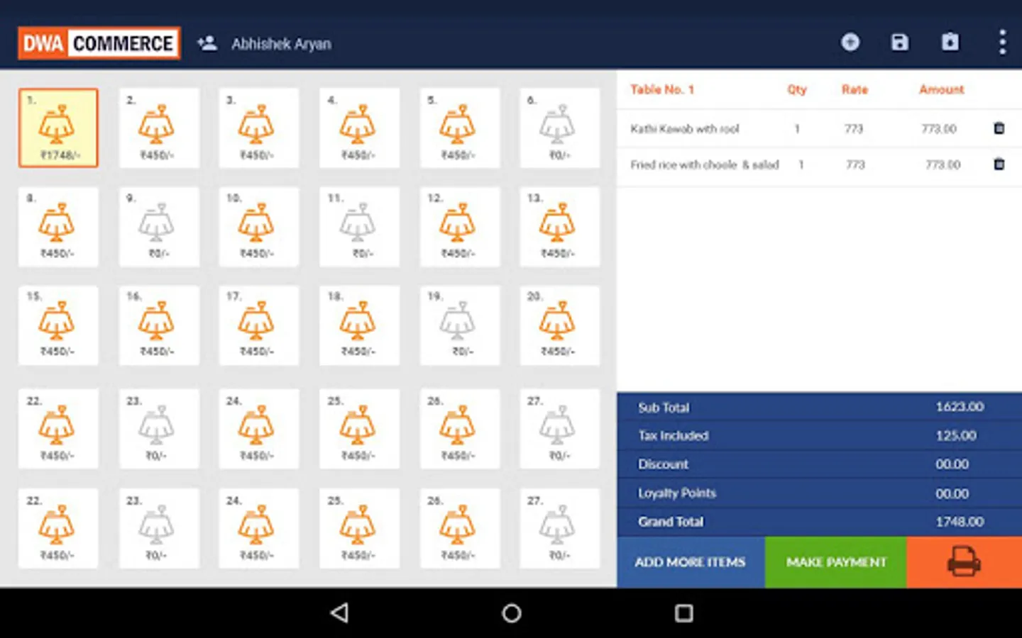 DineIn Point of Sale (POS) is a feature rich and easy to use DineIn restaurant app that allows you to manage and process customer orders. Some of the key features offered include :