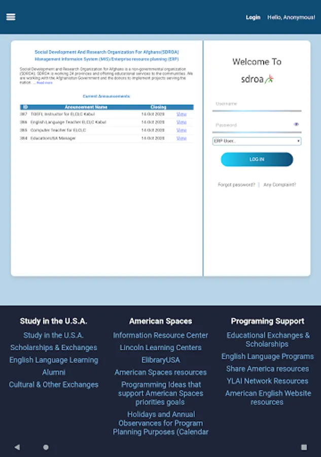 -The ERP is also keeping a record of the Education Management System that covers all management of SDROA English programs and projects: classes, teachers, students, registrations, progress, tests, quizzes, teacher payments, etc.