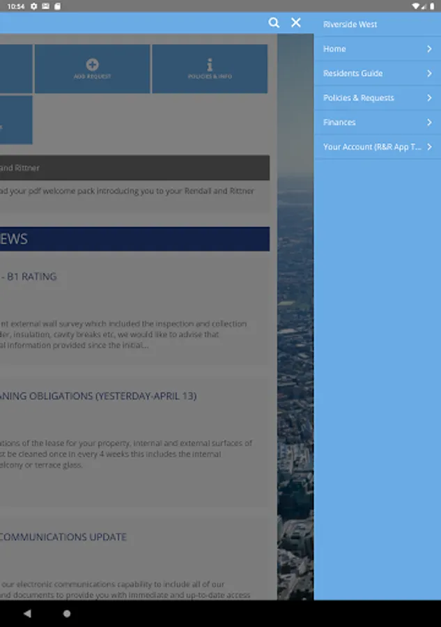 – Shows lists of requests made within your building, for any issues reported or work taking place. You can see any work due to take place. If you want to look at all current requests for the building, select "Active organisation-related requests"