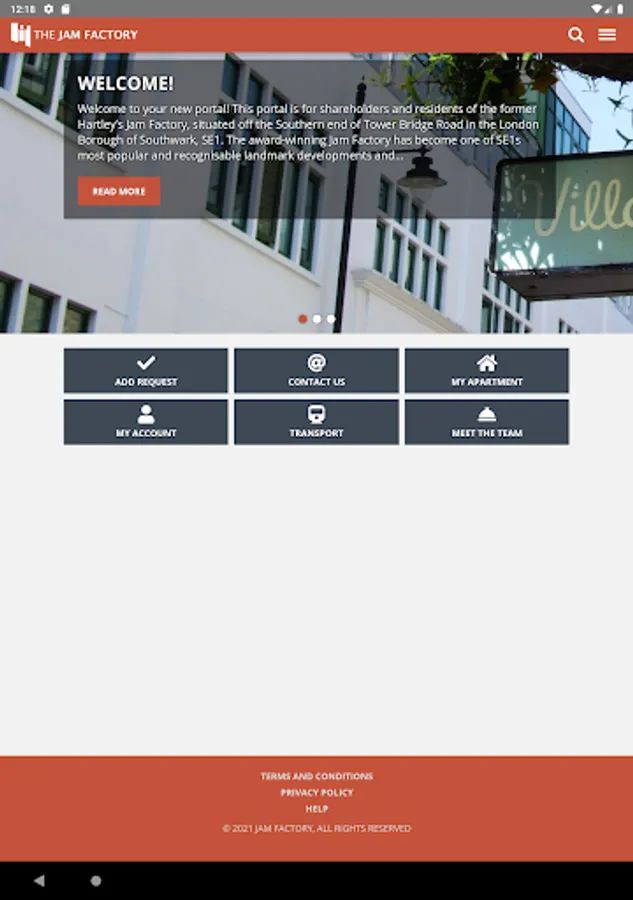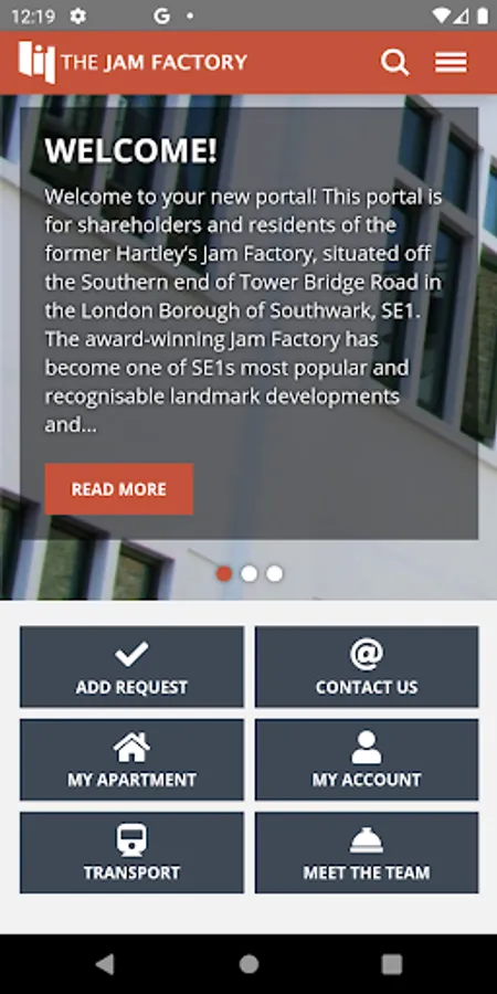 – Is the building’s summary page. It shows the latest stories, details of contacts and requests, forthcoming dates, and useful web-links.
