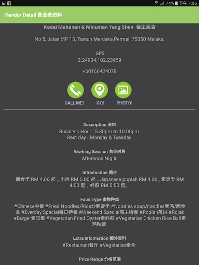 Find 2000+ vegetarian vendors in Malaysia according to area,working hour, food type and price.