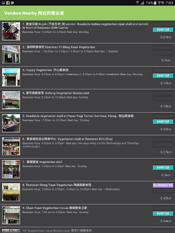 依据地区、营业时间、食物种类和价格寻找马来西亚2000+家的素食业者。