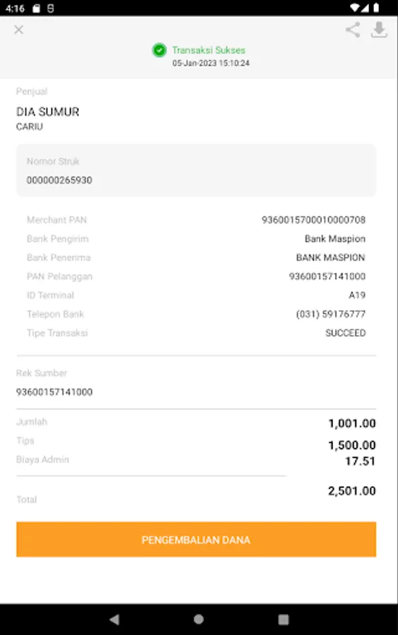 BMAS Merchant adalah aplikasi merchant QRIS oleh PT Bank Maspion Indonesia, Tbk yang menyediakan fitur-fitur antara lain: