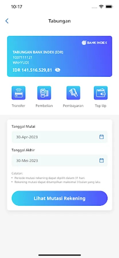 Bank Index memiliki kewenangan penuh untuk menolak atau menerima permohonan pembukaan rekening yang diajukan melalui aplikasi online ini.