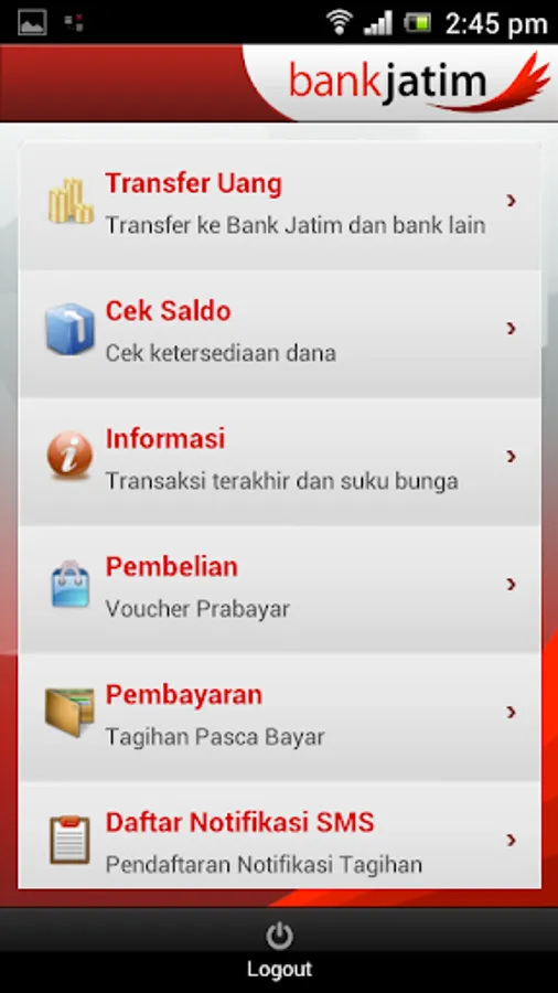 SMS Jatim merupakan salah satu electronic channel (e-channel) yang memungkinkan Bank memberikan layanan kepada nasabahnya melalui smartphone.