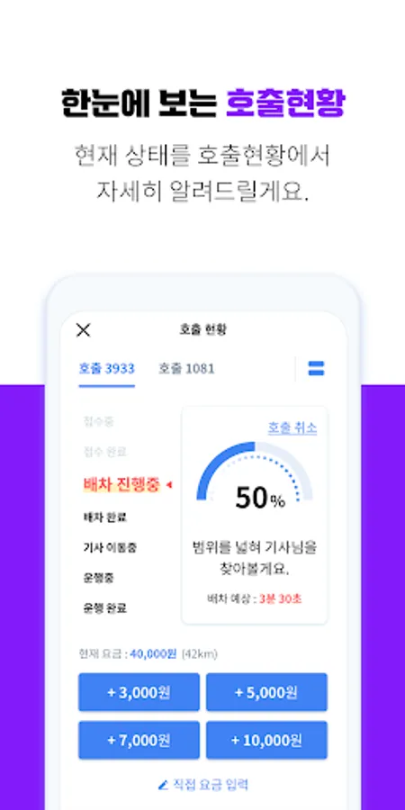 4) Real-time call status view: You can see at a glance the status of calls from the driver and the surrogate driver who called you, from reception to operation status.