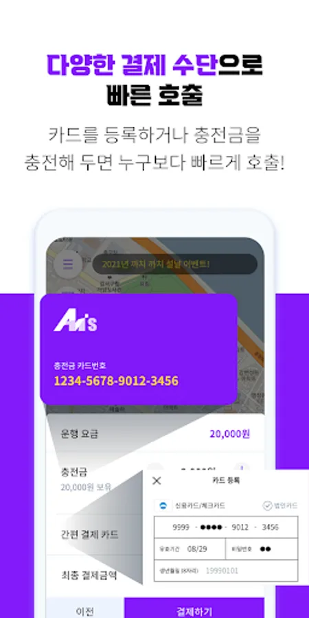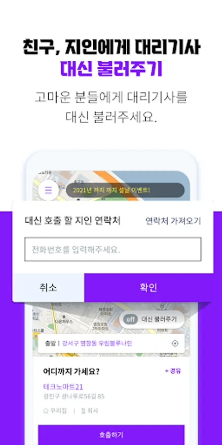 2) Call on behalf of: Provides a function to call (including payment) a substitute driver for a friend or acquaintance. Being able to call several things for you at the same time, you can be a cool person to stop drunk driving at a drinking party.