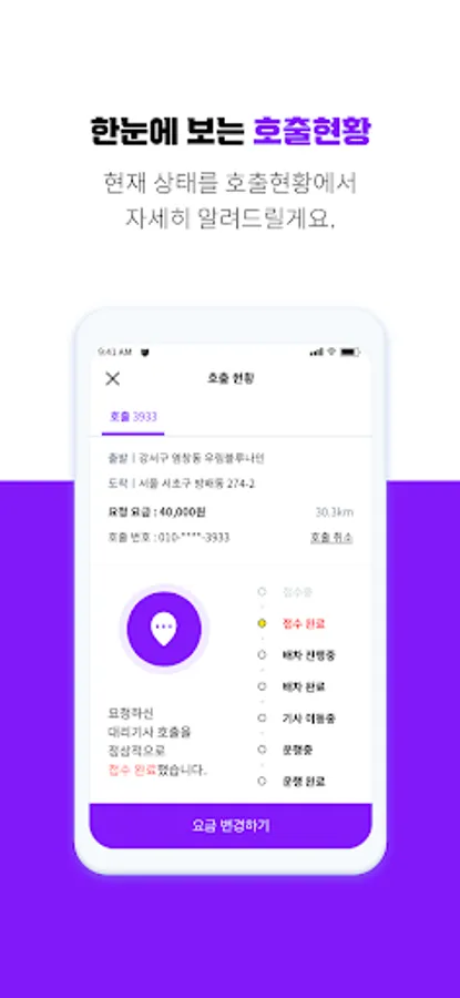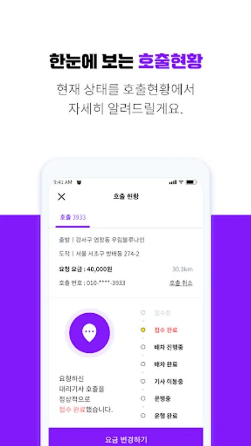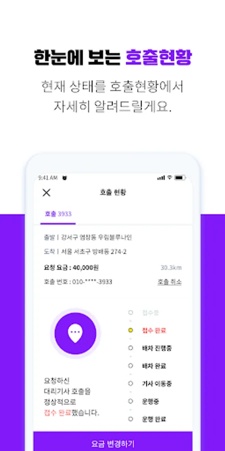 4) Real-time call status view: You can see at a glance the status of calls from the driver and the surrogate driver who called you, from reception to operation status.